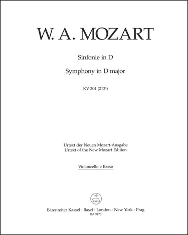 **Title**: Symphony in D major | **Misc Information**: based on Serenade K. 250 (248b) | **Composer / Author**: Mozart, Wolfgang Amadeus | **Editor**: Haußwald, Günter | **Edition Type**: Part, Urtext edition | **Scoring/ Instrumentation**: Violoncello, Double bass | **Binding**: Stapled | **Weight**: 30.0 g | **Format**: 32,5 x 25,5 cm | **Pages**: 8 S. | **Language**: EN | Sample: https://data.baerenreiter.com/NB/BA/BA09173_82_9790006528608_nb_lrg_01.jpg