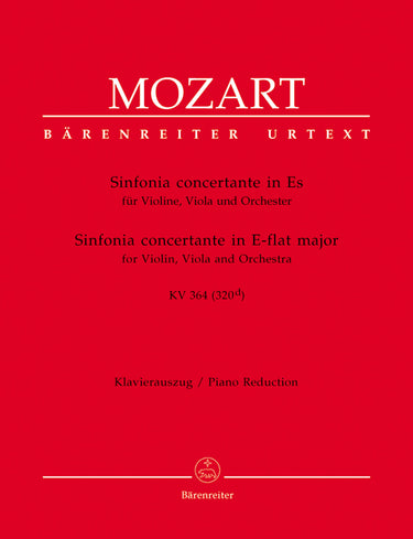 **Title**: Sinfonia concertante for Violin, Viola and Orchestra in E-flat major K. 364 (320d) | **Composer / Author**: Mozart, Wolfgang Amadeus | **Arranger**: Töpel, Michael | **Editor**: Mahling, Christoph-Hellmut | **Edition Type**: Piano reduction, Part, Urtext edition | **Instrumentation**: Violin, Viola, Orchestra | **Scoring/ Instrumentation**: Violin, Viola, Piano | **Binding**: Stapled | **Duration**: 00:25:00 | **Printing**: 11th printing 2022 | **Weight**: 396.0 g | **Format**: 31,0 x 24,3 cm | **Pages**: 47/16/16/16 S. | **Language**: EN | Sample: https://data.baerenreiter.com/NB/BA/BA04900_90_9790006460250_nb_lrg_01.jpg