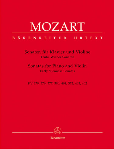 **Title**: Sonatas for Piano and Violin K. 379 (373a), 376 (374d), 377 (374e), 380 (374f), 404 (385d), 372, 403 (385c), 402 (385e) | **Subtitle**: Early Viennese Sonatas | **Composer / Author**: Mozart, Wolfgang Amadeus | **Editor**: Reeser, Eduard | **Edition Type**: Performance score, Part, Anthology, Urtext edition | **Instrumentation**: Violin, Piano | **Scoring/ Instrumentation**: Violin, Piano | **Binding**: Paperback | **Level of Difficulty**: 4.0 | **Printing**: 8th printing 2023 | **Weight**: 504.0 g | **Format**: 31,0 x 24,5 cm | **Pages**: VI, 89/27 S. | **Language**: EN | Sample: https://data.baerenreiter.com/NB/BA/BA04775_00_9790006456314_nb_lrg_01.jpg