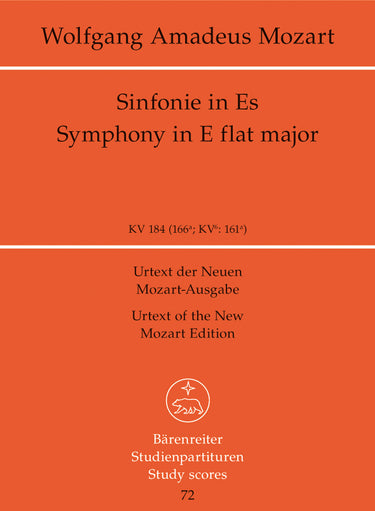 **Title**: Symphony no. 26 in E-flat major K. 184 (166a) | **Composer / Author**: Mozart, Wolfgang Amadeus | **Editor**: Beck, Hermann | **Edition Type**: Study score, Urtext edition | **Instrumentation**: Orchestra | **Binding**: Stapled | **Weight**: 60.0 g | **Format**: 22,5 x 16,5 cm | **Pages**: 22 S. | **Language**: EN | Sample: https://data.baerenreiter.com/NB/TP/TP00072_00_9790006200603_nb_lrg_01.jpg