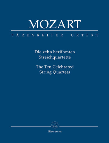 **Title**: The Ten Celebrated String Quartets | **Series**: K. 378, 421, 458, 428, 464, 465, 499, 575, 589, 590 | **Composer / Author**: Mozart, Wolfgang Amadeus | **Editor**: Finscher, Ludwig | **Edition Type**: Study score, Urtext edition, Anthology | **Instrumentation**: String quartet | **Binding**: Paperback | **Level of Difficulty**: 4.0 | **Printing**: 13th printing 2022 | **Weight**: 635.0 g | **Format**: 22,5 x 16,5 cm | **Pages**: XV, 308 S. | **Language**: EN | Sample: https://data.baerenreiter.com/NB/TP/TP00140_00_9790006201181_nb_lrg_01.jpg