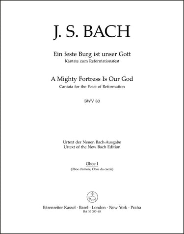 **Title**: A Mighty Fortress is Our God BWV 80 | **Subtitle**: Cantata for the Feast of Reformation | **Comments on Version**: Study score = TP 1080 | **Composer / Author**: Bach, Johann Sebastian | **Editor**: Rempp, Frieder | **Edition Type**: Wind set, Urtext edition | **Scoring/ Instrumentation**: Oboes (3), Oboe d´amore, Oboe da caccia | **Binding**: Stapled | **Weight**: 71.0 g | **Format**: 32,5 x 25,5 cm | **Pages**: 7/4/4 S. | **Language**: EN | Sample: https://data.baerenreiter.com/NB/BA/BA10080_65_9790006490639_nb_lrg_01.jpg