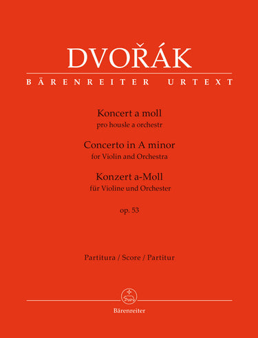 **Title**: Concerto for Violin and Orchestra in A minor op. 53 | **Comments**: Replaces H 1597 | **Composer / Author**: Dvorak, Antonin | **Editor**: Cividini, Iacopo | **Preface**: Cividini, Iacopo | **Edition Type**: Score, Urtext edition | **Instrumentation**: Violin, Orchestra | **Scoring/ Instrumentation**: Orchestra | **Binding**: Paperback | **Level of Difficulty**: 4.0 | **Printing**: 1st printing 2017 | **Weight**: 710.0 g | **Format**: 31,0 x 24,3 cm | **Pages**: XXII, 152 S. | **Language**: EN | Sample: https://data.baerenreiter.com/NB/BA/BA10422_00_9790260107670_nb_lrg_01.jpg