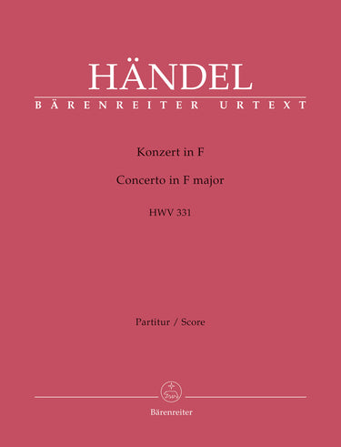**Title**: Concerto in F major HWV 331 | **Composer / Author**: Handel, George Frideric | **Editor**: Best, Terence | **Edition Type**: Score, Urtext edition | **Instrumentation**: Orchestra | **Scoring/ Instrumentation**: Orchestra | **Binding**: Stapled | **Printing**: 1st printing 2021 | **Weight**: 132.0 g | **Format**: 31,0 x 24,3 cm | **Pages**: V, 16 S. | **Language**: EN | Sample: https://data.baerenreiter.com/NB/BA/BA10252_00_9790006538775_nb_lrg_01.jpg