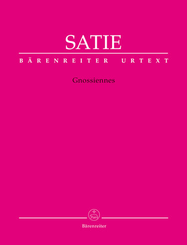 **Title**: Gnossiennes | **Comments on Version**: Notes on performance practice by Steffen Schleiermacher | **Composer / Author**: Satie, Erik | **Editor**: Rosteck, Jens | **Preface**: Rosteck, Jens | **Edition Type**: Performance score, Urtext edition | **Instrumentation**: Piano | **Scoring/ Instrumentation**: Piano | **Binding**: Stapled | **Level of Difficulty**: 3.0 | **Printing**: 3rd printing 2021 | **Weight**: 183.0 g | **Format**: 31,0 x 24,3 cm | **Pages**: XV, 22 S. | **Language**: EN | Sample: https://data.baerenreiter.com/NB/BA/BA10807_00_9790006529339_nb_lrg_01.jpg