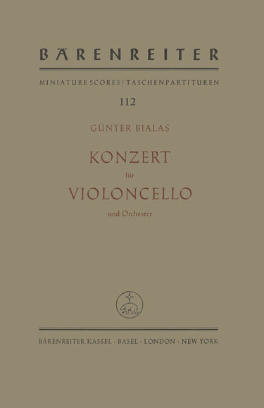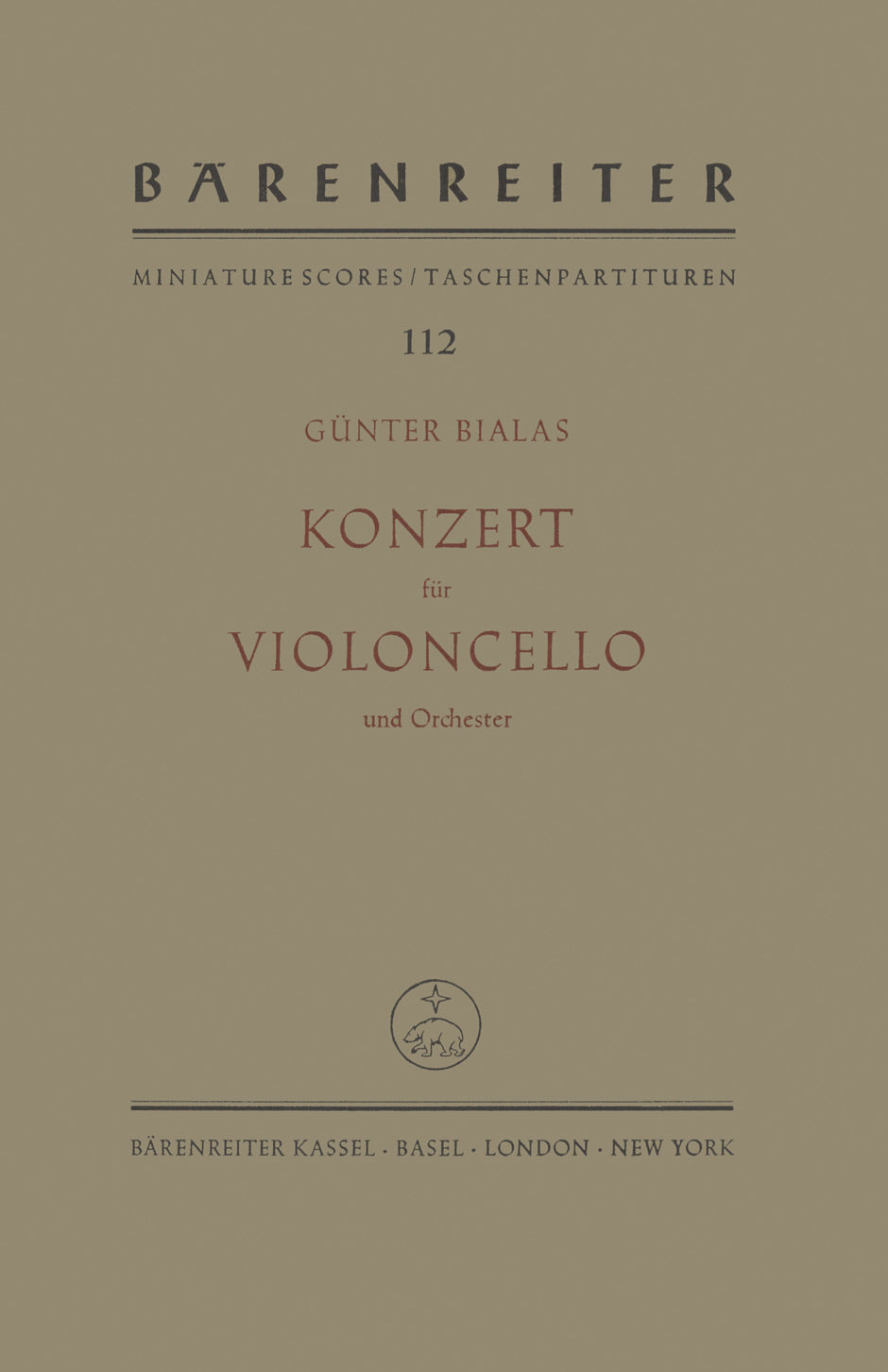 **Title**: Konzert für Violoncello und Orchester no. 1 (1960) | **Composer / Author**: Bialas, Günter | **Edition Type**: Study score | **Instrumentation**: Violoncello, Orchestra | **Binding**: Stapled | **Duration**: 00:16:00 | **Weight**: 144.0 g | **Format**: 23,0 x 15,0 cm | **Pages**: 68 S. | **Language**: EN | Sample: https://data.baerenreiter.com/NB/TP/TP00112_00_9790006200917_nb_lrg_01.jpg