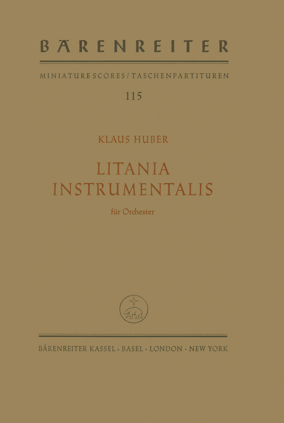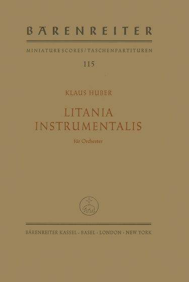 **Title**: Litania instrumentalis (1957) | **Composer / Author**: Huber, Klaus | **Edition Type**: Study score | **Binding**: Stapled | **Duration**: 00:11:00 | **Weight**: 93.0 g | **Format**: 22,5 x 15,0 cm | **Pages**: 46 S. | **Language**: EN | Sample: https://data.baerenreiter.com/NB/TP/TP00115_00_9790006200948_nb_lrg_01.jpg