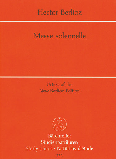 **Title**: Messe solennelle Hol. 20 | **Composer / Author**: Berlioz, Hector | **Editor**: Macdonald, Hugh | **Edition Type**: Study score, Urtext edition | **Instrumentation**: Soloists, Choir, Orchestra | **Binding**: Paperback | **Level of Difficulty**: 4.0 | **Weight**: 427.0 g | **Format**: 22,5 x 16,5 cm | **Pages**: 257 S. | **Language**: EN | Sample: https://data.baerenreiter.com/NB/TP/TP00333_00_9790006202713_nb_lrg_01.jpg