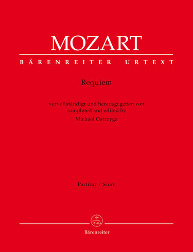 **Title**: Requiem | **Misc Information**: New Completion | **Composer / Author**: Mozart, Wolfgang Amadeus / Ostrzyga, Michael | **Editor**: Ostrzyga, Michael | **Edition Type**: Score, Urtext edition | **Instrumentation**: Soloists, Mixed choir (SATB), Orchestra | **Scoring/ Instrumentation**: Soprano solo, Alto solo, Tenor solo, Bass solo, Mixed choir (SATB), Orchestra | **Binding**: Paperback | **Printing**: 2nd printing 2022 | **Language of Text Part**: Latin | **Weight**: 995.0 g | **Format**: 31,0 x 24,3 cm | **Pages**: XV, 233 S. | **Language**: EN | Sample: https://data.baerenreiter.com/NB/BA/BA11310_00_9790006569199_nb_lrg_01.jpg