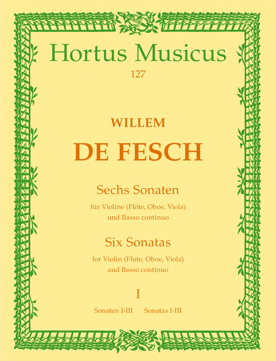 **Title**: Sechs Sonaten für Violine (Flöte, Oboe, Viola) und Basso continuo | **Misc Information**: Heft I | **Composer / Author**: Fesch, Willem de | **Editor**: Woehl, Waldemar | **Edition Type**: Performance score, Set of parts | **Instrumentation**: Violin, Basso continuo | **Scoring/ Instrumentation**: Violin (Flute, Oboe, Viola), Basso continuo | **Binding**: Stapled | **Level of Difficulty**: 3.0 | **Weight**: 141.0 g | **Format**: 29,1 x 21,1 cm | **Pages**: 23 S. | **Language**: EN | Sample: https://data.baerenreiter.com/NB/HM/HM00127_00_9790006002627_nb_lrg_01.jpg