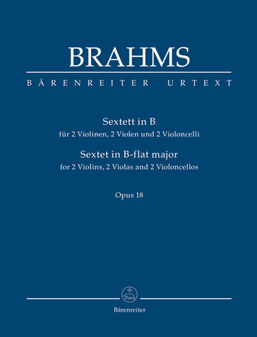 **Title**: Sextet for 2 Violins, 2 Violas und 2 Violoncellos in B-flat major op. 18 | **Composer / Author**: Brahms, Johannes | **Editor**: Hogwood, Christopher | **Preface**: Hogwood, Christopher | **Edition Type**: Study score, Urtext edition | **Binding**: Stapled | **Printing**: 3rd printing 2017 | **Weight**: 166.0 g | **Format**: 22,5 x 16,5 cm | **Pages**: XIX, 58 S. | **Language**: EN | Sample: https://data.baerenreiter.com/NB/TP/TP00419_00_9790006205219_nb_lrg_01.jpg