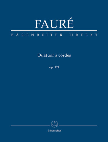 **Title**: Streichquartett op. 121 N 195 | **Composer / Author**: Fauré, Gabriel | **Editor**: Sobaskie, James William | **Preface**: Sobaskie, James William | **Edition Type**: Study score, Urtext edition | **Instrumentation**: String quartet | **Binding**: Stapled | **Printing**: 4. Aufl. 2021 | **Weight**: 107.0 g | **Format**: 22,5 x 16,5 cm | **Pages**: XIX, 30 S. | **Language**: EN | Sample: https://data.baerenreiter.com/NB/TP/TP00412_00_9790006205257_nb_lrg_01.jpg