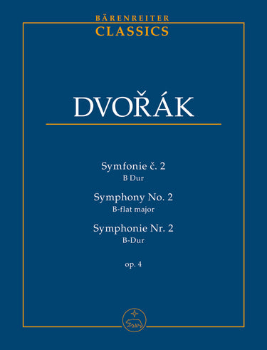 **Title**: Symphonie no. 2 B-Dur op. 4 | **Composer / Author**: Dvorak, Antonin | **Editor**: Bartoš, František | **Edition Type**: Study score | **Instrumentation**: Orchestra | **Binding**: Paperback | **Duration**: 00:46:00 | **Printing**: 2. Aufl. 2008 | **Weight**: 546.0 g | **Format**: 22,5 x 16,5 cm | **Pages**: X, 304 S. | **Language**: EN | Sample: https://data.baerenreiter.com/NB/TP/TP00502_00_9790006205134_nb_lrg_01.jpg
