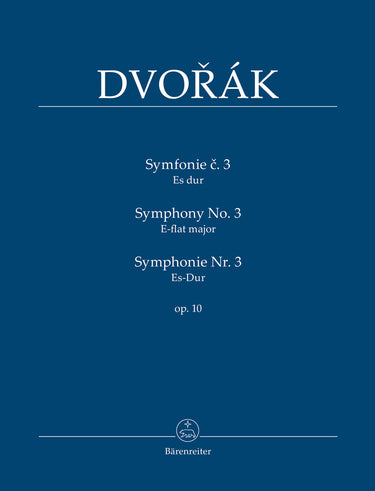 **Title**: Symphonie no. 3 Es-Dur op. 10 | **Composer / Author**: Dvorak, Antonin | **Editor**: Bartoš, František | **Edition Type**: Study score | **Instrumentation**: Orchestra | **Binding**: Paperback | **Duration**: 00:34:00 | **Printing**: 3. Aufl. 2022 | **Weight**: 486.0 g | **Format**: 22,5 x 16,5 cm | **Pages**: X, 234 S. | **Language**: EN | Sample: https://data.baerenreiter.com/NB/TP/TP00503_00_9790006205127_nb_lrg_01.jpg