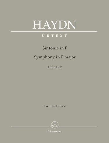 **Title**: Symphony in F major Hob. I:67 | **Comments on Version**: Urtext from the G. Henle Complete Edition of the "Works of Joseph Haydn" | **Composer / Author**: Haydn, Joseph | **Editor**: Stockmeier, Wolfgang | **Preface**: Friesenhagen, Andreas | **Edition Type**: Score, Urtext edition | **Instrumentation**: Orchestra | **Binding**: Stapled | **Duration**: 00:29:00 | **Printing**: 1st printing 2024 | **Weight**: 238.0 g | **Format**: 1,0 x 24,3 cm | **Pages**: IV, 46 S. | **Language**: EN | Sample: https://data.baerenreiter.com/NB/BA/BA10993_00_9790006578153_nb_lrg_01.jpg