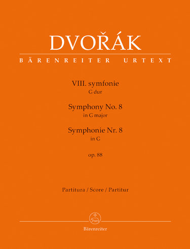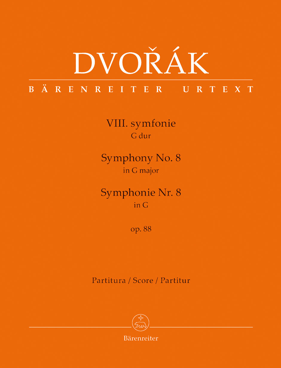 **Title**: Symphony no. 8 in G major op. 88 | **Composer / Author**: Dvorak, Antonin | **Editor**: Del Mar, Jonathan | **Edition Type**: Score, Urtext edition | **Instrumentation**: Orchestra | **Scoring/ Instrumentation**: Orchestra | **Binding**: Paperback | **Duration**: 00:37:00 | **Printing**: 3rd printing 2023 | **Weight**: 662.0 g | **Format**: 32,5 x 25,5 cm | **Pages**: VII, 139 S. | **Language**: EN | Sample: https://data.baerenreiter.com/NB/BA/BA10418_00_9790006564644_nb_lrg_01.jpg