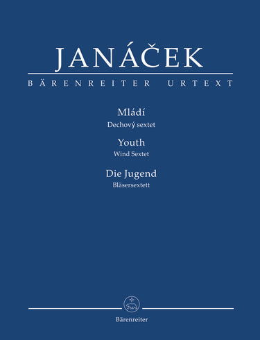 **Title**: Mládí (Youth) | **Subtitle**: Wind Sextet | **Composer / Author**: Janácek, Leoš | **Editor**: Faltus, Leoš / Doležal, Jan | **Preface**: Zahrádka, Jirí | **Edition Type**: Study score, Urtext edition | **Binding**: Paperback | **Weight**: 137.0 g | **Format**: 22,5 x 16,5 cm | **Pages**: XXVII, 39 S. | **Language**: EN | Sample: https://data.baerenreiter.com/NB/TP/TP00528_00_9790260104761_nb_lrg_01.jpg
