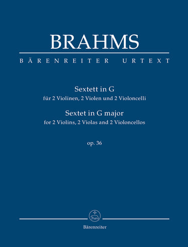 **Title**: Sextet for 2 Violins, 2 Violas and 2 Violoncellos in G major op. 36 | **Composer / Author**: Brahms, Johannes | **Editor**: Hogwood, Christopher | **Preface**: Hogwood, Christopher | **Edition Type**: Study score, Urtext edition | **Binding**: Paperback | **Printing**: 3rd printing 2018 | **Weight**: 208.0 g | **Format**: 22,5 x 16,5 cm | **Pages**: XXII, 77 S. | **Language**: EN | Sample: https://data.baerenreiter.com/NB/TP/TP00420_00_9790006205226_nb_lrg_01.jpg