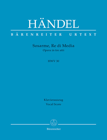 **Title**: Sosarme, Re di Media HWV 30 | **Subtitle**: Opera in 3 acts | **Misc Information**: London Version 1732 | **Composer / Author**: Handel, George Frideric | **Arranger**: Köhs, Andreas | **Editor**: Pacholke, Michael | **Preface**: Blaut, Stephan | **Edition Type**: Vocal Score, Urtext edition | **Instrumentation**: Soloists, Orchestra | **Binding**: Paperback | **Duration**: 02:30:00 | **Printing**: 1st printing 2020 | **Language of Text Part**: Italian, German | **Weight**: 809.0 g | **Format**: 27,0 x 19,0 cm | **Pages**: XVI, 286 S. | **Language**: EN | Sample: https://data.baerenreiter.com/NB/BA/BA10713_90_9790006558407_nb_lrg_01.jpg