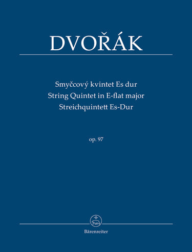 **Title**: String Quintet in E-flat major op. 97 | **Comments**: Replaces H 1305 | **Composer / Author**: Dvorak, Antonin | **Editor**: Bartoš, František | **Preface**: Beveridge, David R. | **Edition Type**: Study score | **Binding**: Paperback | **Level of Difficulty**: 3.0 | **Weight**: 173.0 g | **Format**: 22,5 x 16,5 cm | **Pages**: XX, 67 S. | **Language**: EN | Sample: https://data.baerenreiter.com/NB/TP/TP00532_00_9790260105676_nb_lrg_01.jpg