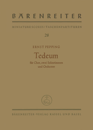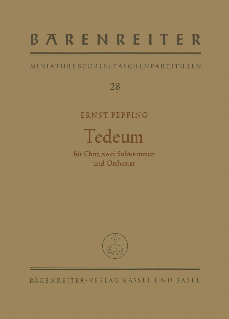 **Title**: Te deum (1956) | **Composer / Author**: Pepping, Ernst | **Edition Type**: Study score | **Binding**: Stapled | **Level of Difficulty**: 4.0 | **Duration**: 00:50:00 | **Weight**: 214.0 g | **Format**: 18,5 x 13,5 cm | **Pages**: 187 S. | **Language**: EN | Sample: https://data.baerenreiter.com/NB/TP/TP00028_00_9790006200252_nb_lrg_01.jpg