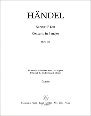 **Title**: Concerto in F major HWV 331 | **Composer / Author**: Handel, George Frideric | **Editor**: Best, Terence | **Edition Type**: Part, Urtext edition | **Scoring/ Instrumentation**: Harpsichord | **Binding**: Stapled | **Weight**: 32.0 g | **Format**: 32,5 x 25,5 cm | **Pages**: 5 S. | **Language**: EN | Sample: https://data.baerenreiter.com/NB/BA/BA10252_68_9790006538836_nb_lrg_01.jpg