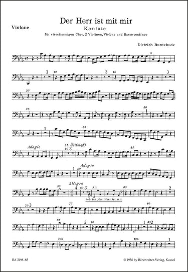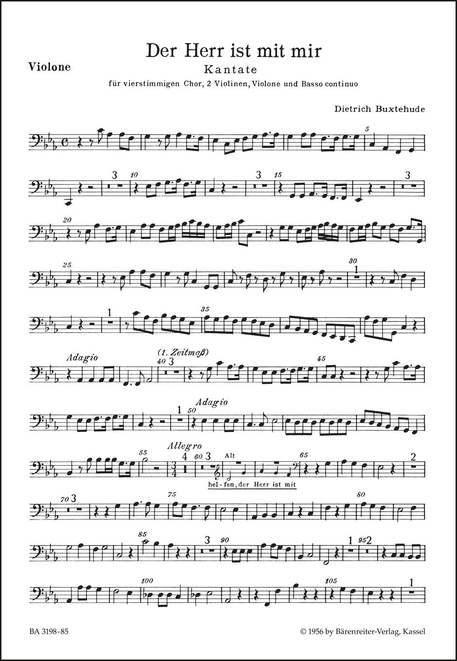**Title**: Der Herr ist mit mir BuxWV 15 | **Subtitle**: Cantata | **Composer / Author**: Buxtehude, Dietrich | **Editor**: Grusnick, Bruno | **Edition Type**: Part | **Scoring/ Instrumentation**: Double bass, Violoncello | **Binding**: Stapled | **Weight**: 5.0 g | **Format**: 27,0 x 19,0 cm | **Pages**: 2 S. | **Language**: EN | Sample: https://data.baerenreiter.com/NB/BA/BA03198_85_9790006431311_nb_lrg_01.jpg