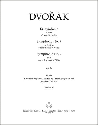 **Title**: Symphony no. 9 in E minor op. 95 "New World" | **Composer / Author**: Dvorak, Antonin | **Editor**: Del Mar, Jonathan | **Edition Type**: Part, Urtext edition | **Scoring/ Instrumentation**: 2. Violin | **Binding**: Stapled | **Weight**: 66.0 g | **Format**: 32,5 x 25,5 cm | **Pages**: 14 S. | **Language**: EN | Sample: https://data.baerenreiter.com/NB/BA/BA10419_75_9790006564743_nb_lrg_01.jpg