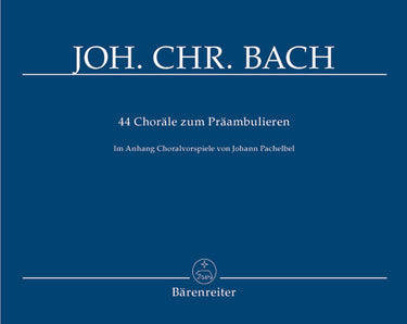**Title**: 44 Choräle zum Präambulieren | **Composer / Author**: Bach, Johann Christoph | **Editor**: Fischer, Martin | **Preface**: Fischer, Martin | **Edition Type**: Performance score, Anthology | **Instrumentation**: Organ | **Scoring/ Instrumentation**: Organ | **Binding**: Stapled | **Level of Difficulty**: 2.0 | **Printing**: 22. Aufl. 2019 | **Weight**: 217.0 g | **Format**: 24,0 x 30,5 cm | **Pages**: 48 S. | **Language**: EN | Sample: https://data.baerenreiter.com/NB/BA/BA00285_00_9790006401277_nb_lrg_01.jpg