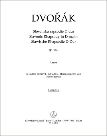 **Title**: Slavonic Rhapsody in D major op. 45/1 | **Composer / Author**: Dvorak, Antonin | **Editor**: Simon, Robert | **Edition Type**: Part, Urtext edition | **Scoring/ Instrumentation**: Violoncello | **Binding**: Stapled | **Weight**: 33.0 g | **Format**: 32,5 x 25,5 cm | **Pages**: 7 S. | **Language**: EN | Sample: https://data.baerenreiter.com/NB/BA/BA10401_82_9790260108219_nb_lrg_01.jpg