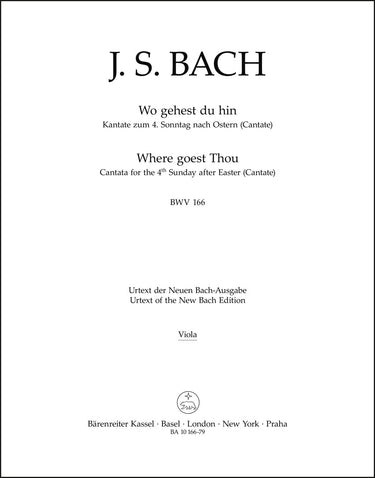 **Title**: Wo gehest du hin? BWV 166 | **Subtitle**: Cantata for the 4th Sunday after Easter | **Composer / Author**: Bach, Johann Sebastian | **Editor**: Dürr, Alfred | **Edition Type**: Part, Urtext edition | **Scoring/ Instrumentation**: Viola | **Binding**: Stapled | **Weight**: 30.0 g | **Format**: 32,5 x 25,5 cm | **Pages**: 5 S. | **Language**: EN | Sample: https://data.baerenreiter.com/NB/BA/BA10166_79_9790006491384_nb_lrg_01.jpg
