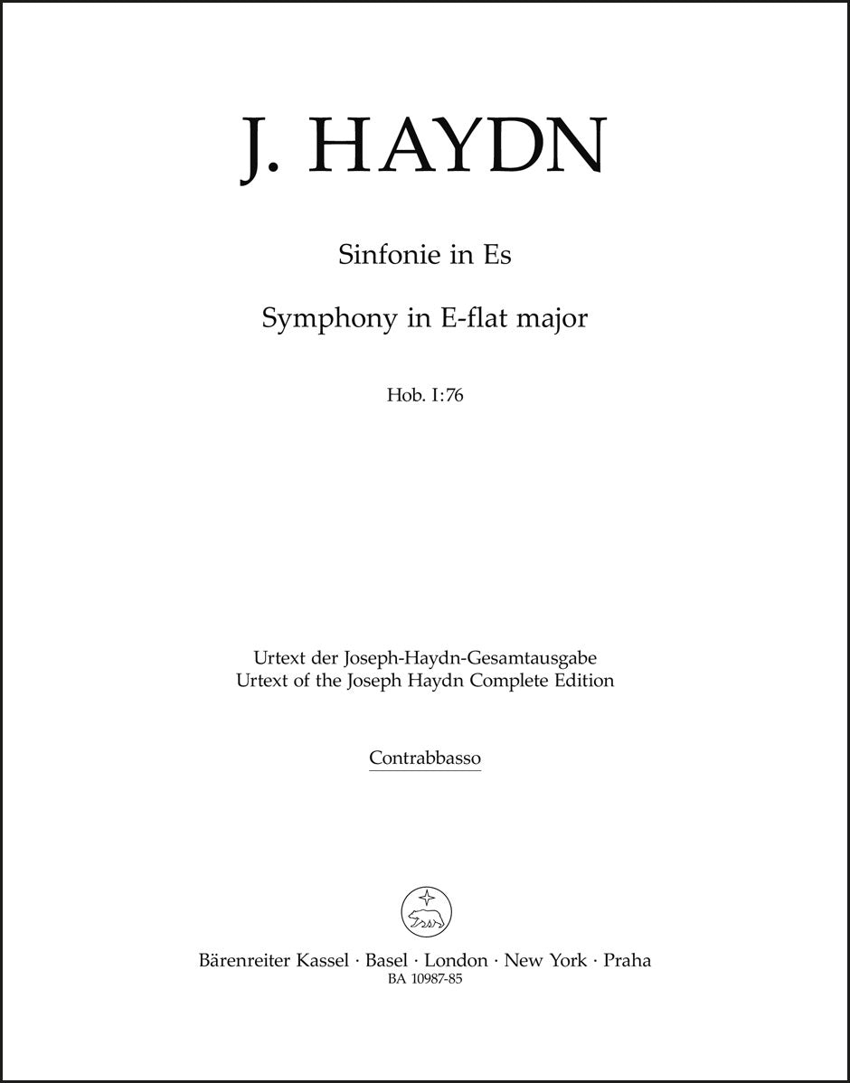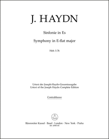 **Title**: Symphony in E-flat major Hob. I:76 | **Comments on Version**: Urtext from: Joseph Haydn Works, G. Henle Verlag Munich | **Composer / Author**: Haydn, Joseph | **Editor**: Gerlach, Sonja / Murray, Sterling E. | **Edition Type**: Part, Urtext edition | **Scoring/ Instrumentation**: Double bass | **Binding**: Stapled | **Weight**: 33.0 g | **Format**: 32,5 x 25,5 cm | **Pages**: 7 S. | **Language**: EN | Sample: https://data.baerenreiter.com/NB/BA/BA10987_85_9790006569878_nb_lrg_01.jpg