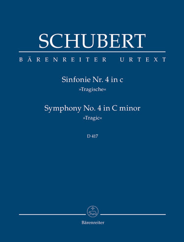 **Title**: Symphony no. 4 in C minor D 417 "Tragic" | **Composer / Author**: Schubert, Franz | **Editor**: Feil, Arnold / Woodfull-Harris, Douglas | **Preface**: Feil, Arnold | **Edition Type**: Study score, Urtext edition | **Instrumentation**: Orchestra | **Binding**: Paperback | **Duration**: 00:30:00 | **Printing**: 6th printing 2022 | **Weight**: 232.0 g | **Format**: 22,5 x 16,5 cm | **Pages**: VI, 104 S. | **Language**: EN | Sample: https://data.baerenreiter.com/NB/TP/TP00404_00_9790006204441_nb_lrg_01.jpg