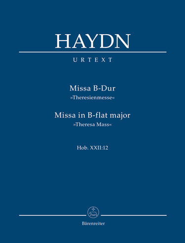 **Title**: Missa in B-flat major Hob.XXII:12 "Theresa Mass" | **Comments on Version**: Urtext from: Joseph Haydn Werke, G. Henle Verlag Munich | **Composer / Author**: Haydn, Joseph | **Editor**: Thomas, Günter | **Edition Type**: Study score, Urtext edition | **Binding**: Paperback | **Level of Difficulty**: 3.0 | **Duration**: 00:42:00 | **Printing**: 7th printing 2022 | **Weight**: 292.0 g | **Format**: 22,5 x 16,5 cm | **Pages**: VI, 138 S. | **Language**: EN | Sample: https://data.baerenreiter.com/NB/TP/TP00099_00_9790006200801_nb_lrg_01.jpg