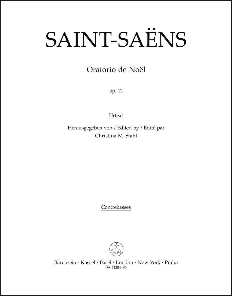 **Title**: Oratorio de Noël op. 12 | **Composer / Author**: Saint-Saëns, Camille | **Editor**: Stahl, Christina M. | **Edition Type**: Part, Urtext edition | **Scoring/ Instrumentation**: Double bass | **Binding**: Stapled | **Duration**: 00:40:00 | **Weight**: 35.0 g | **Format**: 32,5 x 25,5 cm | **Pages**: 7 S. | **Language**: EN | Sample: https://data.baerenreiter.com/NB/BA/BA11304_85_9790006566204_nb_lrg_01.jpg