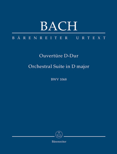 **Title**: Orchestral Suite (Overture) in D major BWV 1068 | **Composer / Author**: Bach, Johann Sebastian | **Editor**: Besseler, Heinrich / Grüß, Hans | **Preface**: Schütz, Gudula | **Edition Type**: Study score, Urtext edition | **Binding**: Stapled | **Duration**: 00:24:00 | **Printing**: 10th printing 2019 | **Weight**: 106.0 g | **Format**: 22,5 x 16,5 cm | **Pages**: XII, 30 S. | **Language**: EN | Sample: https://data.baerenreiter.com/NB/TP/TP00194_00_9790006201631_nb_lrg_01.jpg