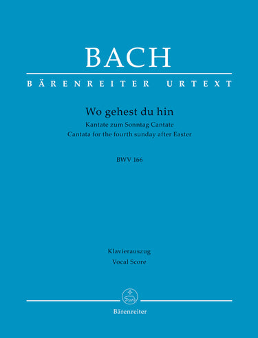 **Title**: Wo gehest du hin? BWV 166 | **Subtitle**: Cantata for the 4th Sunday after Easter | **Composer / Author**: Bach, Johann Sebastian | **Arranger**: Dürr, Alfred | **Editor**: Dürr, Alfred | **Edition Type**: Vocal Score, Urtext edition | **Binding**: Stapled | **Level of Difficulty**: 3.0 | **Printing**: 2nd printing 2021 | **Language of Text Part**: German | **Weight**: 90.0 g | **Format**: 27,0 x 19,0 cm | **Pages**: IV, 18 S. | **Language**: EN | Sample: https://data.baerenreiter.com/NB/BA/BA10166_90_9790006491407_nb_lrg_01.jpg