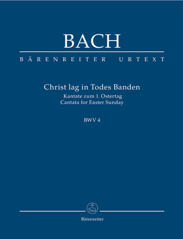 **Title**: Christ lay by death enshrouded BWV 4 | **Subtitle**: Cantata for Easter Sunday | **Misc Information**: Christ lay in grim death's prison | **Comments on Version**: Parts and Vocal Score = BA 10004 | **Composer / Author**: Bach, Johann Sebastian | **Editor**: Dürr, Alfred | **Edition Type**: Study score, Urtext edition | **Binding**: Stapled | **Level of Difficulty**: 3.0 | **Duration**: 00:22:00 | **Printing**: 6th printing 2020 | **Language of Text Part**: German | **Weight**: 104.0 g | **Format**: 22,5 x 16,5 cm | **Pages**: VI, 38 S. | **Language**: EN | Sample: https://data.baerenreiter.com/NB/TP/TP01004_00_9790006204069_nb_lrg_01.jpg