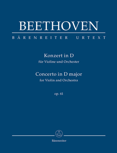 **Title**: Concerto for Violin and Orchestra in D major op. 61 | **Comments on Version**: Broad selection of cadenzas included in BA 9020 | **Composer / Author**: Beethoven, Ludwig van | **Editor**: Del Mar, Jonathan | **Preface**: Cooper, Barry / Del Mar, Jonathan | **Edition Type**: Study score, Urtext edition | **Binding**: Paperback | **Duration**: 00:42:00 | **Printing**: 3rd printing 2023 | **Weight**: 205.0 g | **Format**: 22,5 x 16,5 cm | **Pages**: XVII, 82 S. | **Language**: EN | Sample: https://data.baerenreiter.com/NB/TP/TP00919_00_9790006205318_nb_lrg_01.jpg