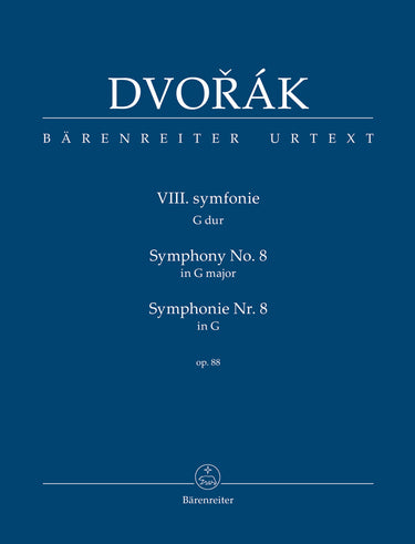 **Title**: Symphony no. 8 in G major op. 88 | **Comments**: Replaces TP 508 | **Composer / Author**: Dvorak, Antonin | **Editor**: Del Mar, Jonathan | **Preface**: Beveridge, David R. | **Edition Type**: Study score, Urtext edition | **Binding**: Paperback | **Duration**: 00:37:00 | **Printing**: 1st printing 2020 | **Weight**: 321.0 g | **Format**: 22,5 x 16,5 cm | **Pages**: XXIV, 139 S. | **Language**: EN | Sample: https://data.baerenreiter.com/NB/TP/TP00618_00_9790006567409_nb_lrg_01.jpg