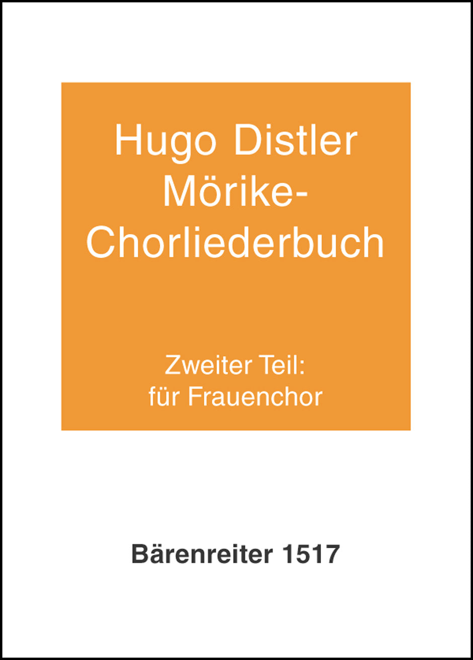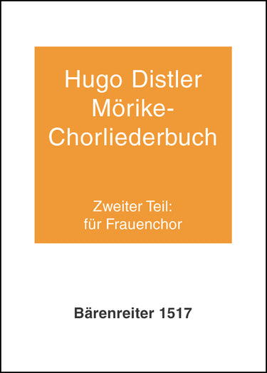 **Title**: Mörike-Chorliederbuch, Teil 2 op. 19 (1938/1939) | **Composer / Author**: Distler, Hugo | **Libretto/Text by**: Mörike, Eduard | **Edition Type**: Choral score, Anthology | **Instrumentation**: Female choir | **Scoring/ Instrumentation**: Female choir | **Binding**: Stapled | **Level of Difficulty**: 4.0 | **Printing**: 17. Aufl. 2022 | **Weight**: 91.0 g | **Format**: 27,0 x 19,0 cm | **Pages**: 28 S. | **Language**: EN | Sample: https://data.baerenreiter.com/NB/BA/BA01517_00_9790006411269_nb_lrg_01.jpg