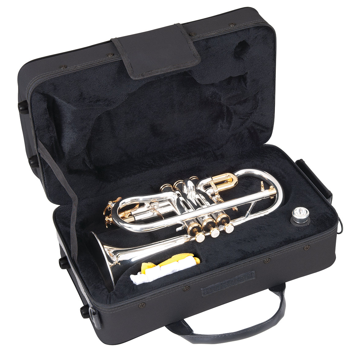 With a luscious silver-plated brass body, offset with gold lacquered parts, including the slide, Monel valves, bottom and top caps, finger buttons and water keys, the aesthetics of the Eb Soprano Cornet from the Odyssey Premier Series speak for themselves.