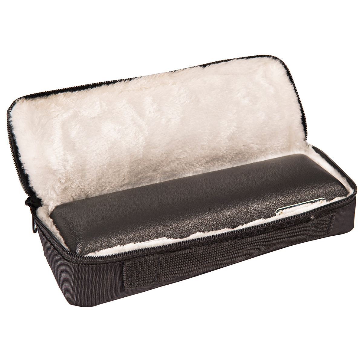 • Zero-gravity hard foam, plush lined, canvas covered case with shoulder strap