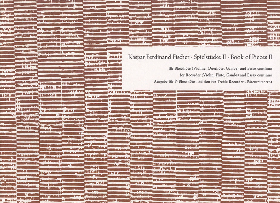 **Title**: Spielstücke aus der Suiten-Sammlung "Le Journal du Printemps" für Altblockflöte | **Misc Information**: Heft 2 | **Composer / Author**: Fischer, Johann Caspar Ferdinand | **Editor**: Woehl, Waldemar | **Edition Type**: Performance score, Part | **Instrumentation**: Recorder, Piano | **Scoring/ Instrumentation**: Treble recorder, Piano, Harpsichord | **Binding**: Stapled | **Level of Difficulty**: 3.0 | **Weight**: 62.0 g | **Format**: 18,8 x 26,0 cm | **Pages**: 16/4 S. | **Language**: EN | Sample: https://data.baerenreiter.com/NB/BA/BA00974_00_9790006407040_nb_lrg_01.jpg