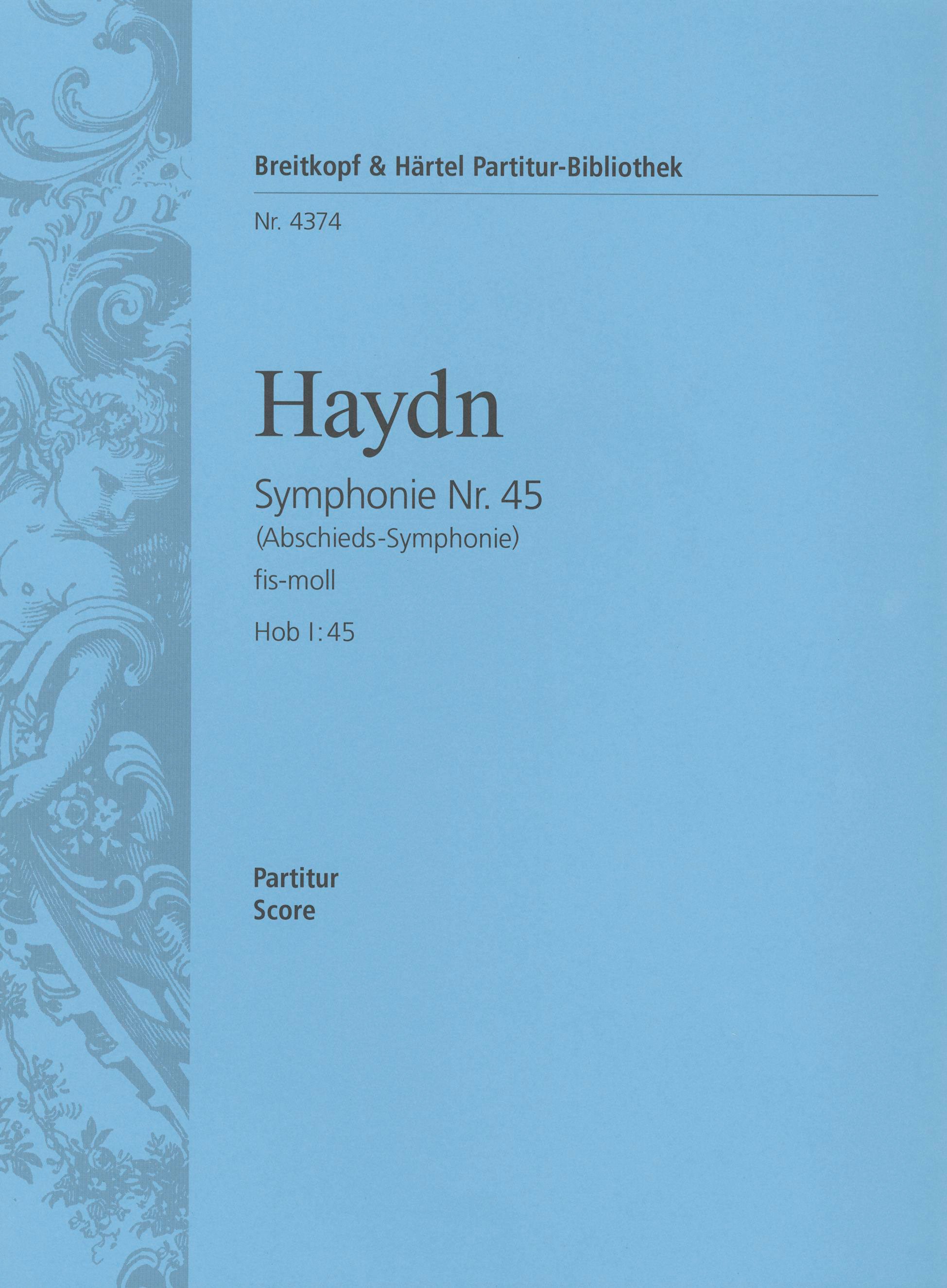 Symphony No. 45 in F minor Hob I:45 | Farewell Symphony | orch | 0.2.0.1 – 2.0.0.0 – str | Orchestra | Orchestra | Orchestra | 36' | Classical | Symphony | Sheet Music | full score | | | 28 | stapled | 23 x 30,5 cm