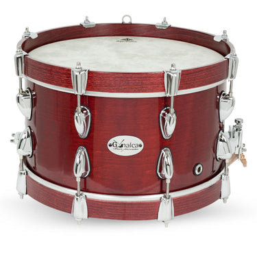 Birch shell and beech hoops. Remo heads: Fiberskyn III + mufle and Remo UT Ambassador snare. Control ring optional. 8 divisions. Gonalca marching drum.