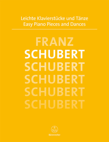 **Title**: Easy Piano Pieces and Dances | **Comments on Version**: With fingering by Annette Töpel | **Composer / Author**: Schubert, Franz | **Editor**: Litschauer, Walburga | **Preface**: Töpel, Michael | **Edition Type**: Performance score, Anthology | **Instrumentation**: Piano | **Scoring/ Instrumentation**: Piano | **Binding**: Stapled | **Level of Difficulty**: 3.0 | **Printing**: 10th printing 2024 | **Weight**: 121.0 g | **Format**: 30,0 x 23,0 cm | **Pages**: 24 S. | **Language**: EN | Sample: https://data.baerenreiter.com/NB/BA/BA05639_00_9790006493258_nb_lrg_01.jpg