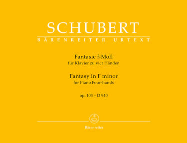 **Title**: Fantasy for Piano (Four-Hands) in F minor op. 103 D 940 | **Comments on Version**: With notes on performance practice by Mario Aschauer | **Composer / Author**: Schubert, Franz | **Editor**: Litschauer, Walburga | **Preface**: Litschauer, Walburga | **Edition Type**: Performance score, Urtext edition | **Instrumentation**: Piano | **Scoring/ Instrumentation**: Piano | **Binding**: Stapled | **Level of Difficulty**: 4.0 | **Printing**: 1st printing 2024 | **Weight**: 246.0 g | **Format**: 24,0 x 30,5 cm | **Pages**: XXIII, 33 S. | **Language**: EN | Sample: https://data.baerenreiter.com/NB/BA/BA11862_00_9790006578276_nb_lrg_01.jpg