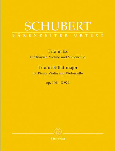 **Title**: Trio for Piano, Violin and Violoncello in E-flat major op. 100 D 929 | **Composer / Author**: Schubert, Franz | **Editor**: Feil, Arnold | **Edition Type**: Performance score, Set of parts, Urtext edition | **Instrumentation**: Piano trio | **Scoring/ Instrumentation**: Violin, Violoncello, Piano | **Binding**: Paperback | **Level of Difficulty**: 4.0 | **Printing**: 13th printing 2024 | **Weight**: 576.0 g | **Format**: 31,0 x 24,3 cm | **Pages**: 76/21/23 S. | **Language**: EN | Sample: https://data.baerenreiter.com/NB/BA/BA05610_00_9790006472765_nb_lrg_01.jpg