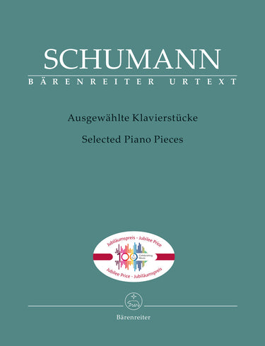 **Title**: Selected Piano Pieces | **Comments**: Excerpt from BA09639, BA09640, BA09641 | **Comments on Version**: Jubilee Edition - 100 Years of Bärenreiter | **Composer / Author**: Schumann, Robert | **Edition Type**: Performance score, Urtext edition | **Instrumentation**: Piano solo | **Binding**: Stapled | **Level of Difficulty**: 3.0 | **Printing**: 2nd printing 2023 | **Weight**: 103.0 g | **Format**: 31,0 x 24,3 cm | **Pages**: 15 S. | **Language**: EN | Sample: https://data.baerenreiter.com/NB/BA/BA08640_00_9790006576043_nb_lrg_01.jpg